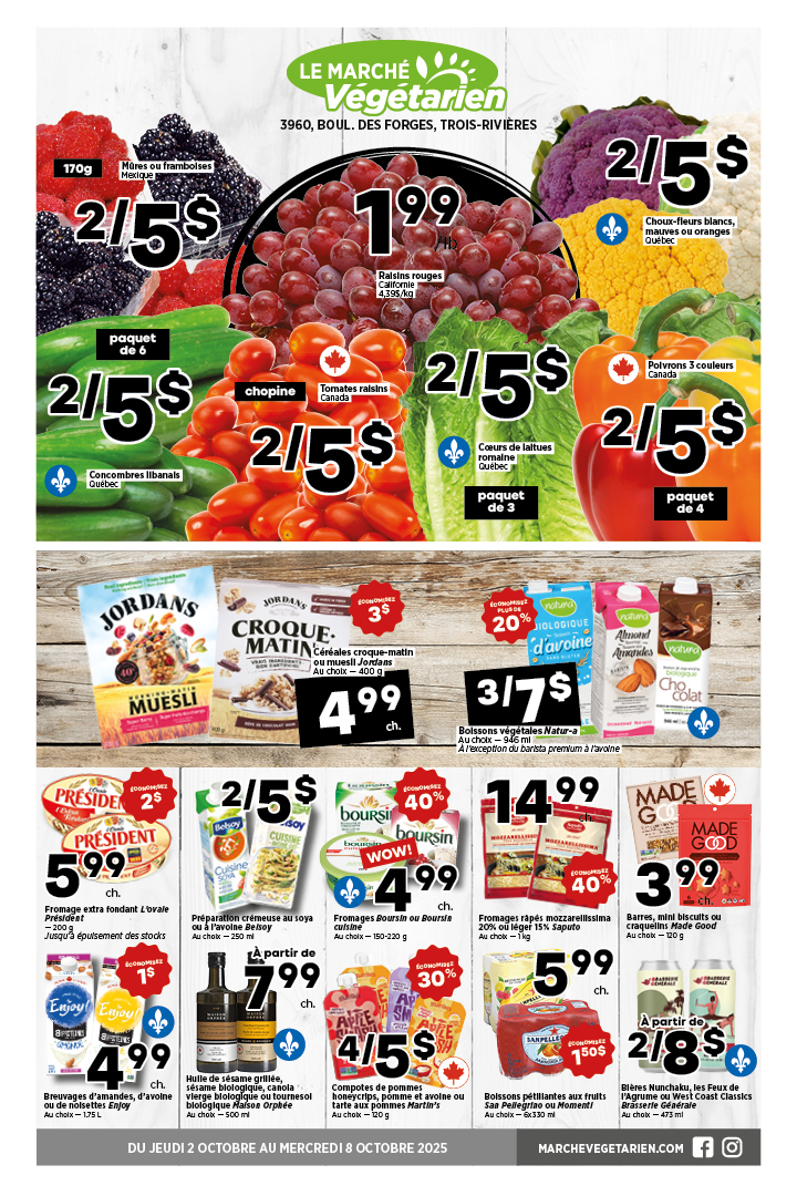 Circulaires 2 au 8 octobre 2025 Sherbrooke et Magog Rock Forest Trois-Rivières 25 septembre au 1er octobre 2025 Sherbrooke et Magog Rock Forest Trois-Rivières