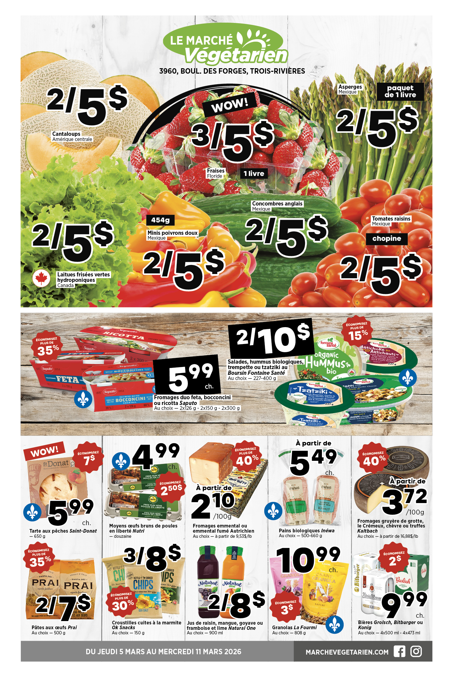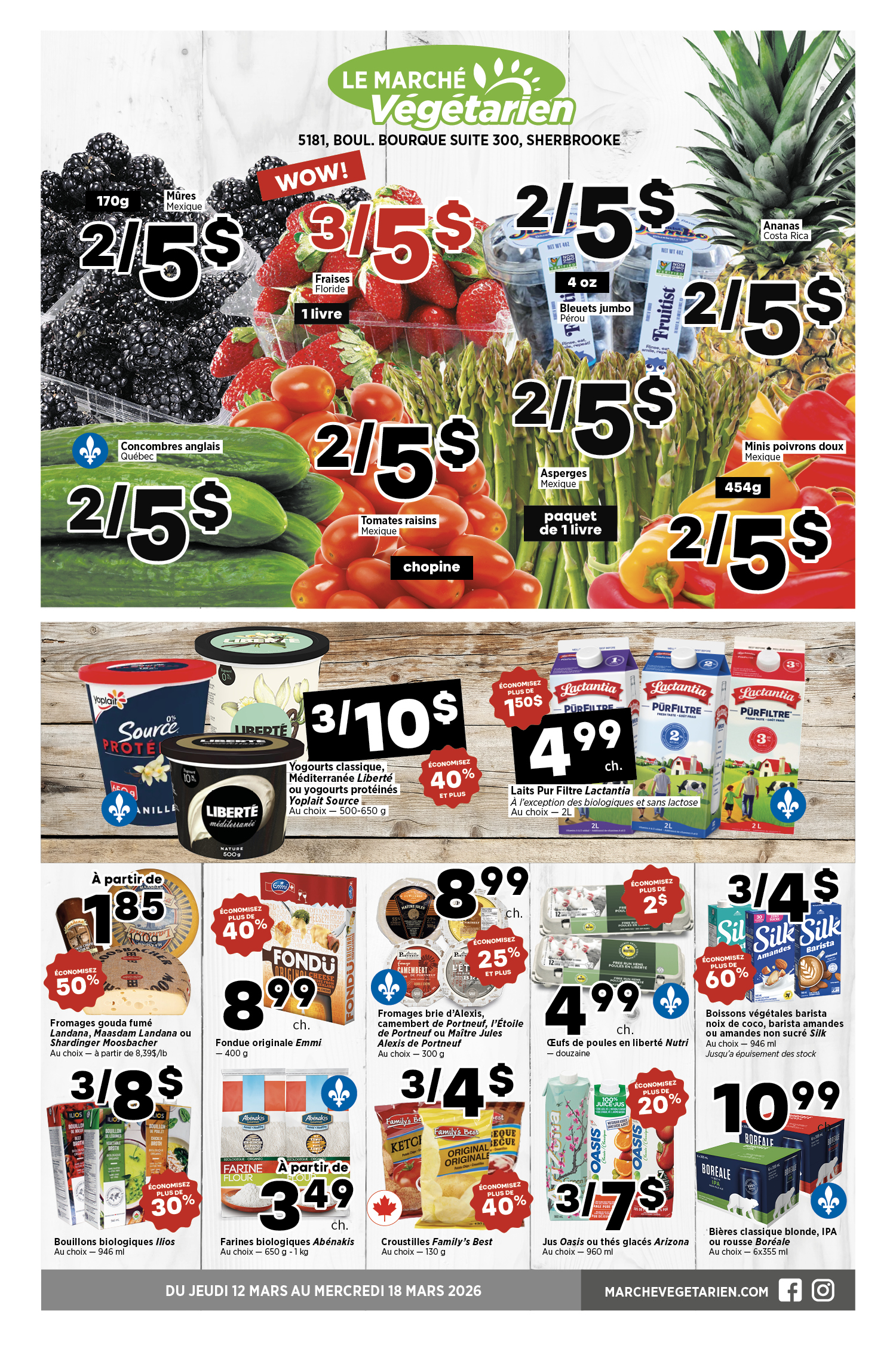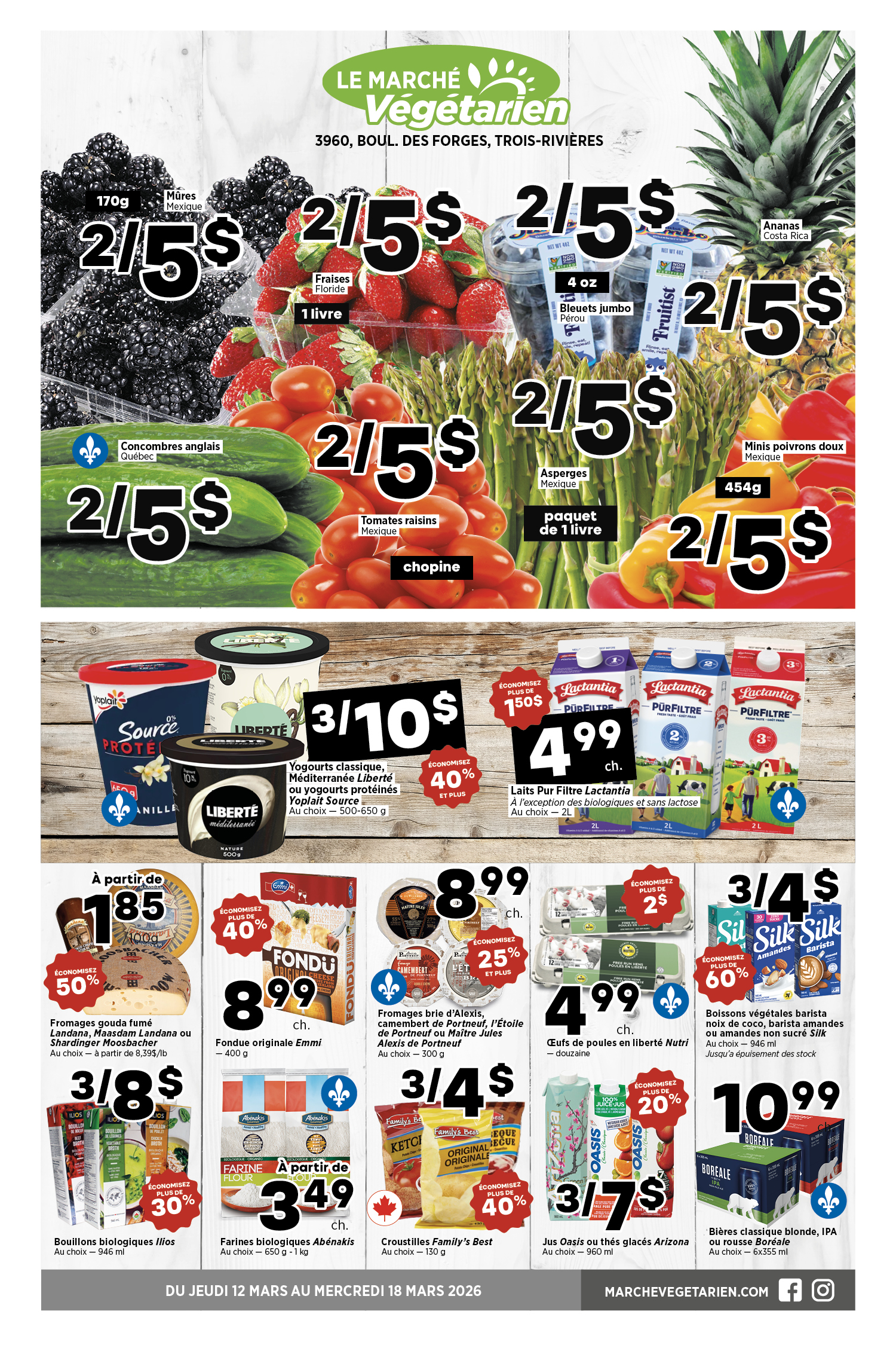 Circulaires 12 au 18 mars 2026 Sherbrooke et Magog Rock Forest Trois-Rivières 5 au 11 mars 2026 Sherbrooke et Magog Rock Forest Trois-Rivières
